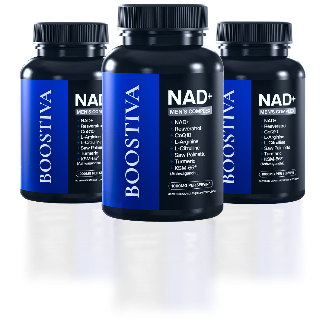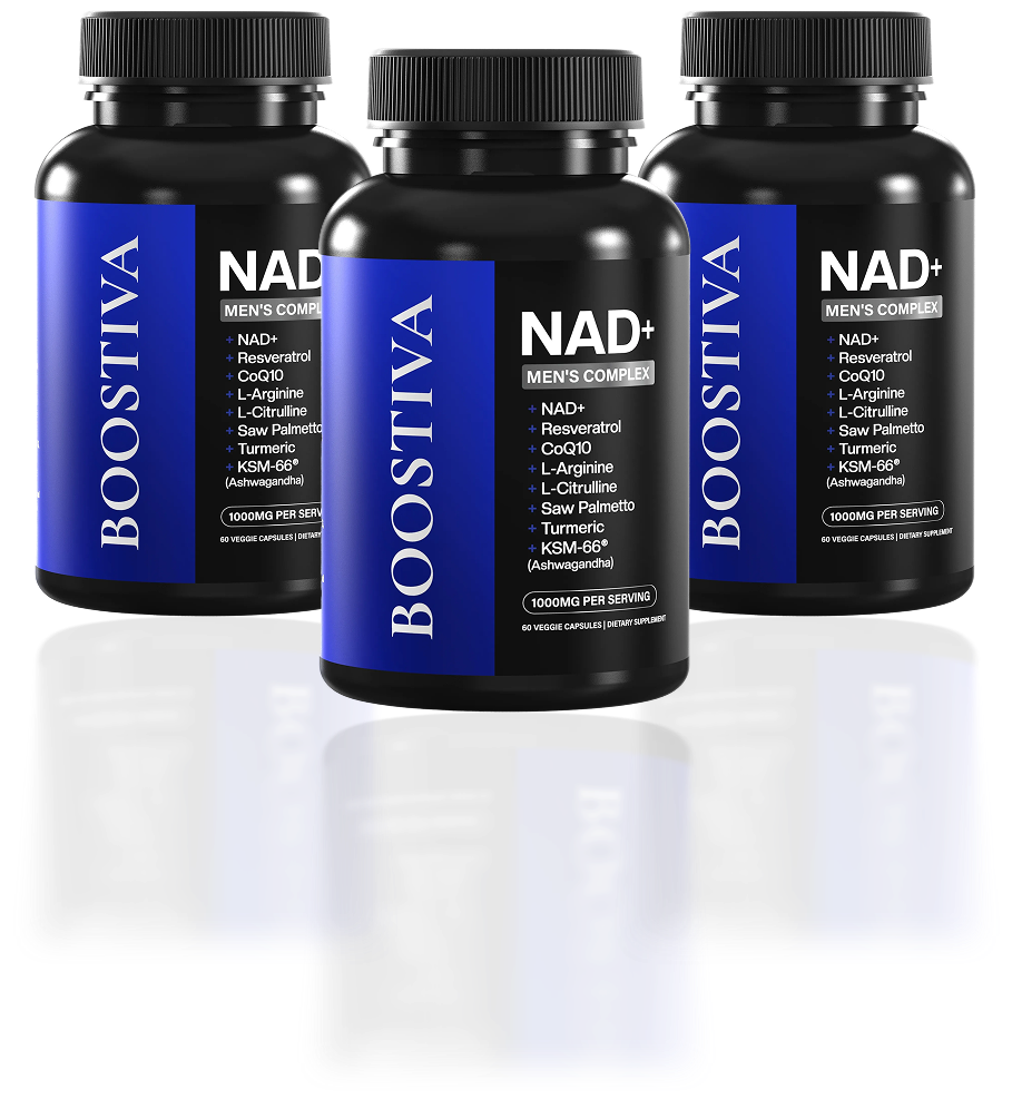 The good news: Boostiva helps support healthy NAD+ levels promoting stronger energy, better circulation, and renewed male vitality.